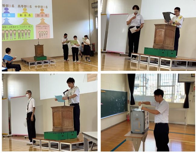 令和7年度後期児童生徒会役員選挙が行われました。高等部より会長と副会長を1名ずつ、中学部より副会長1名、計3名の役員が選出されました。