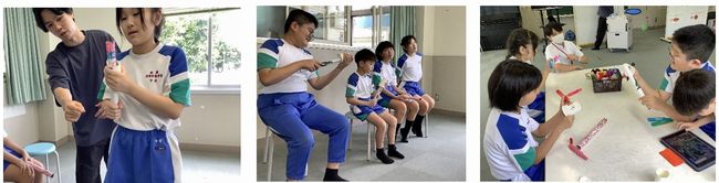 うめ・さくら組Bグループでは「ものの仕組みと働き」を体験的に学習するために、ゴムを使ったおもちゃ作りに取り組みました。