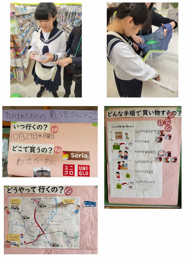 買い物の手順や支払いの仕方を学習をしたり、バスの乗り方を確かめたり、お昼ご飯はどこで何を食べるかを決めたりして、迎えた当日。商品がどこにあるかよく見て探す姿、他に買いたいものがあっても頼まれたものだけをかごに入れる姿、学習した仕方で自信たっぷりに支払いをする姿、おいしそうにご飯を食べる姿、そして、がんばって疲れて、バスでうとうとする姿・・・。それぞれが自分のめあてを達成することができ、充実した1日となりました。